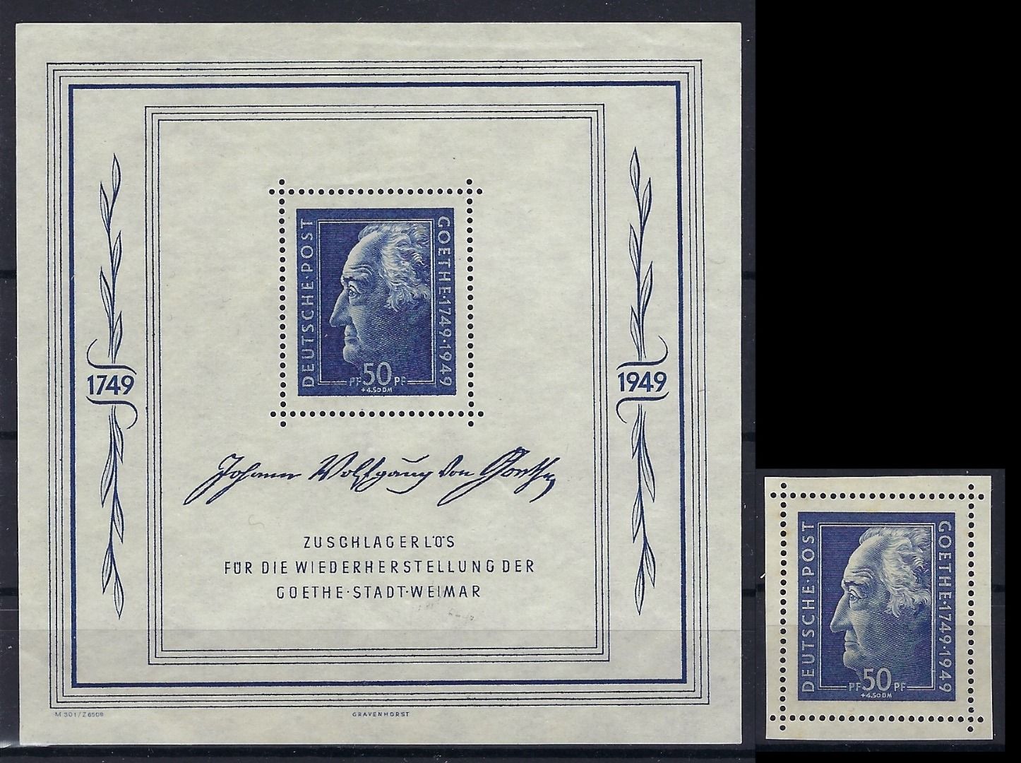 SBZ Goethe, Block 6 ** mit Blockmarken, ME 370€