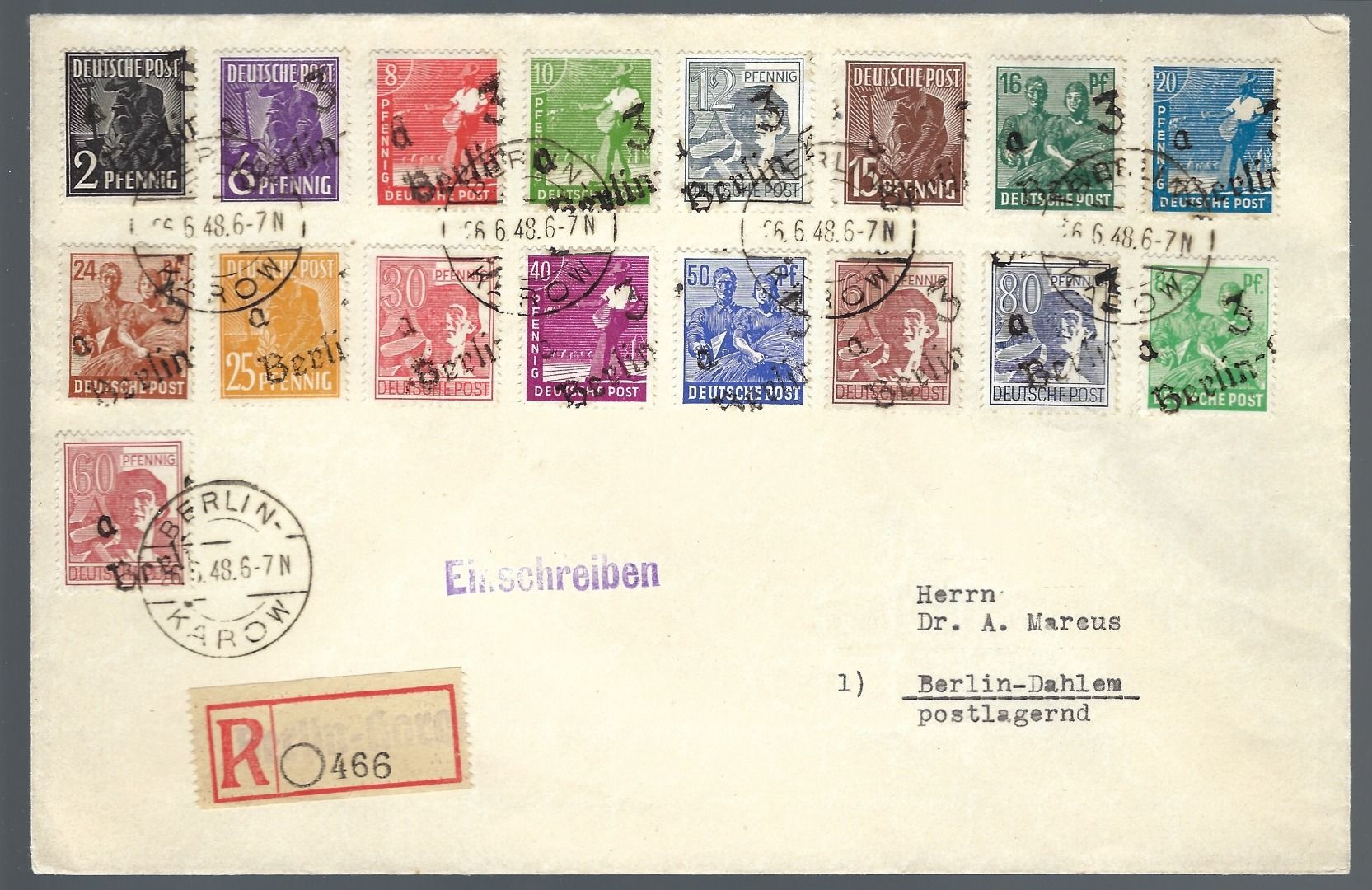 SBZ Handstempel, Bezirk 3, Mi 166 I-181 I mit 179Ia, Satzbrief