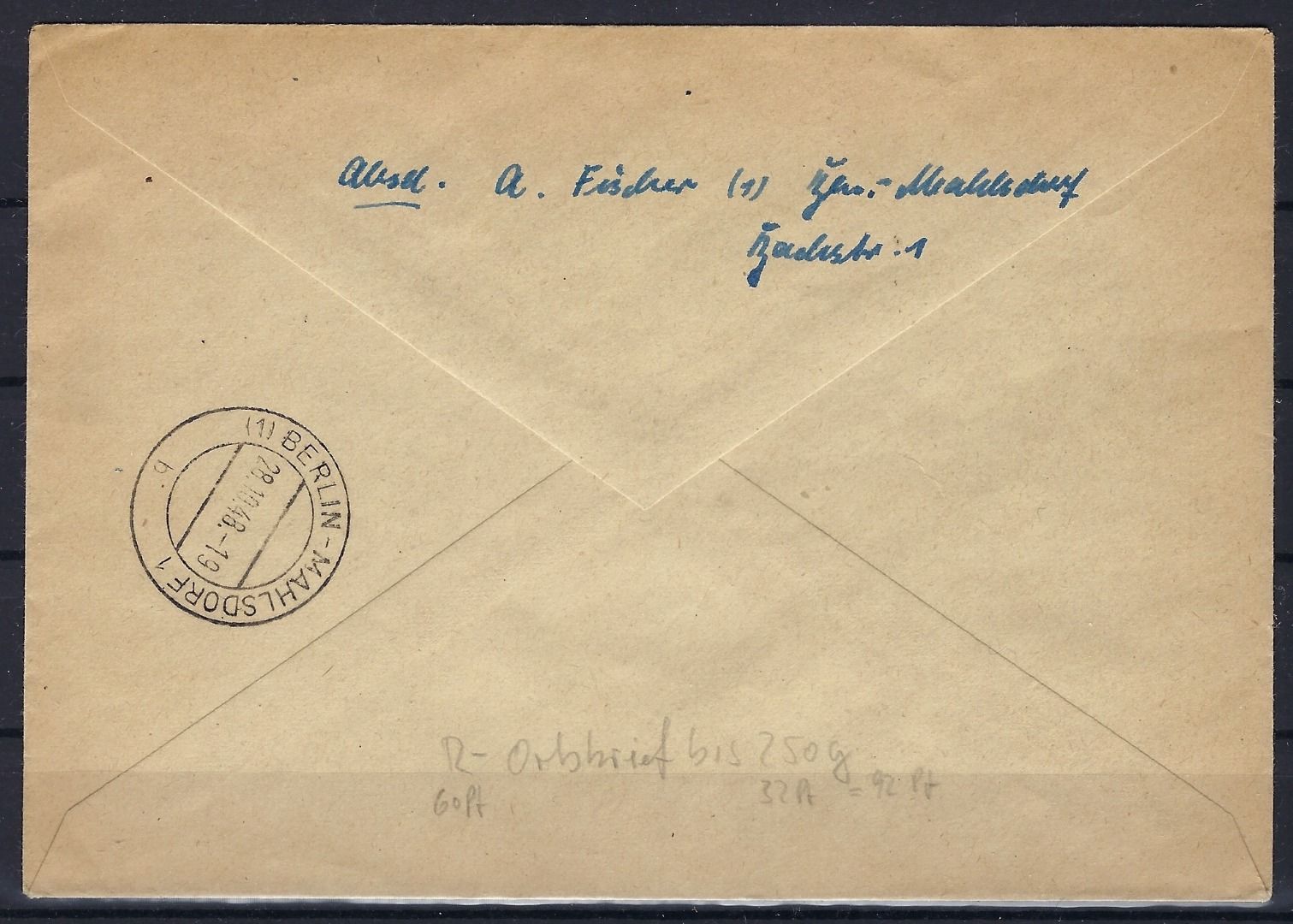 SBZ Mi 194 P OR dgz Einschreiben Berlin-Mahlsdorf Ortsbrief
