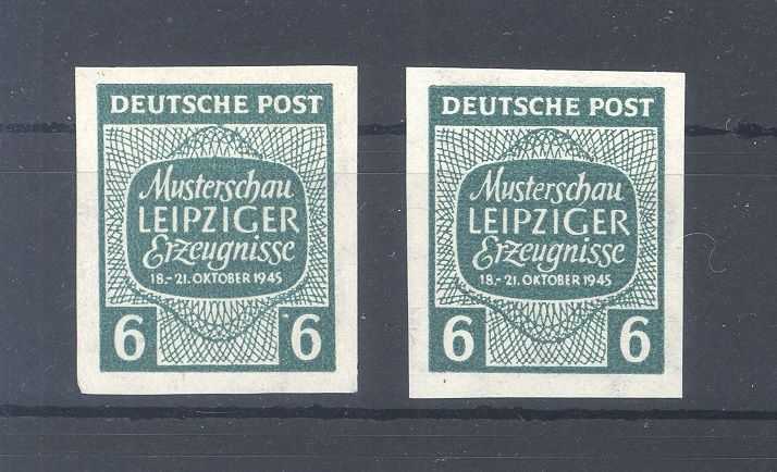 SBZ Michel Nummer 124 X+Y U, 6 Pfg. Freimarke 1945 mit beiden Wasserzeichen ungezähnt **
