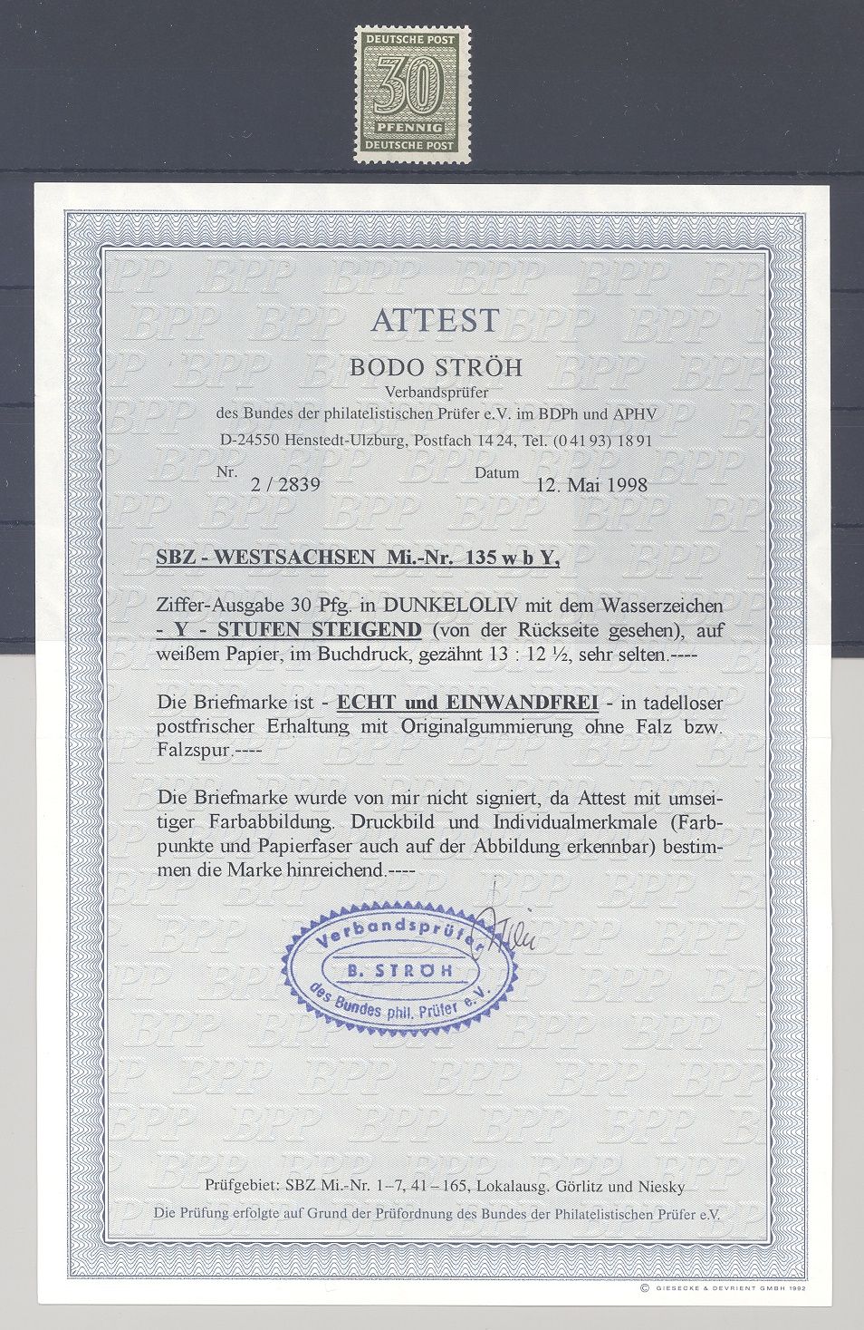 SBZ Michel Nummer 135 Yb, 30 Pfg. Freimarke 1945 ** in der guten Farbe b, sehr schöner Wert. Es liegt ein FA BPP vor, hat bereits einiges gekostet, ist mit eingescannt.