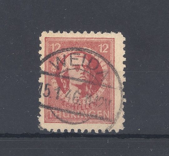 SBZ Michel Nummer 97 Ax bat, 12 Pfg. Freimarke 1945 in der guten Type bat gestempelt. Der Wert ist geprüft BPP.