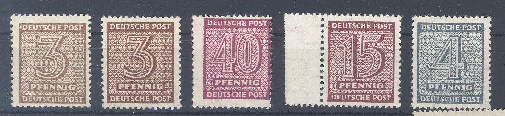 SBZ, ** Posten aus Michel 126/37, Freimarken 1945 bestehend aus Michel Nummer 126 Yc,d, 133 Yb, 136 Yb und 127 Xb. Jeder Wert ist geprüft BPP.