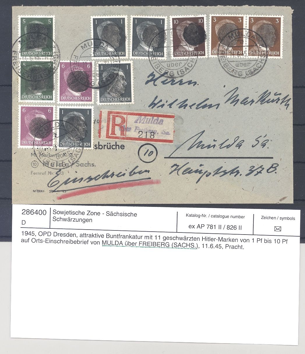 SBZ, sächsische Schwärzungen, sauberer Einschreib - Brief frankiert mit umfangreicher MiF aus Mulda. War wohl mal ein Auktionslos, nette Ergänzung zur Sammlung.