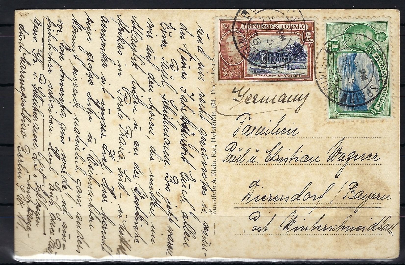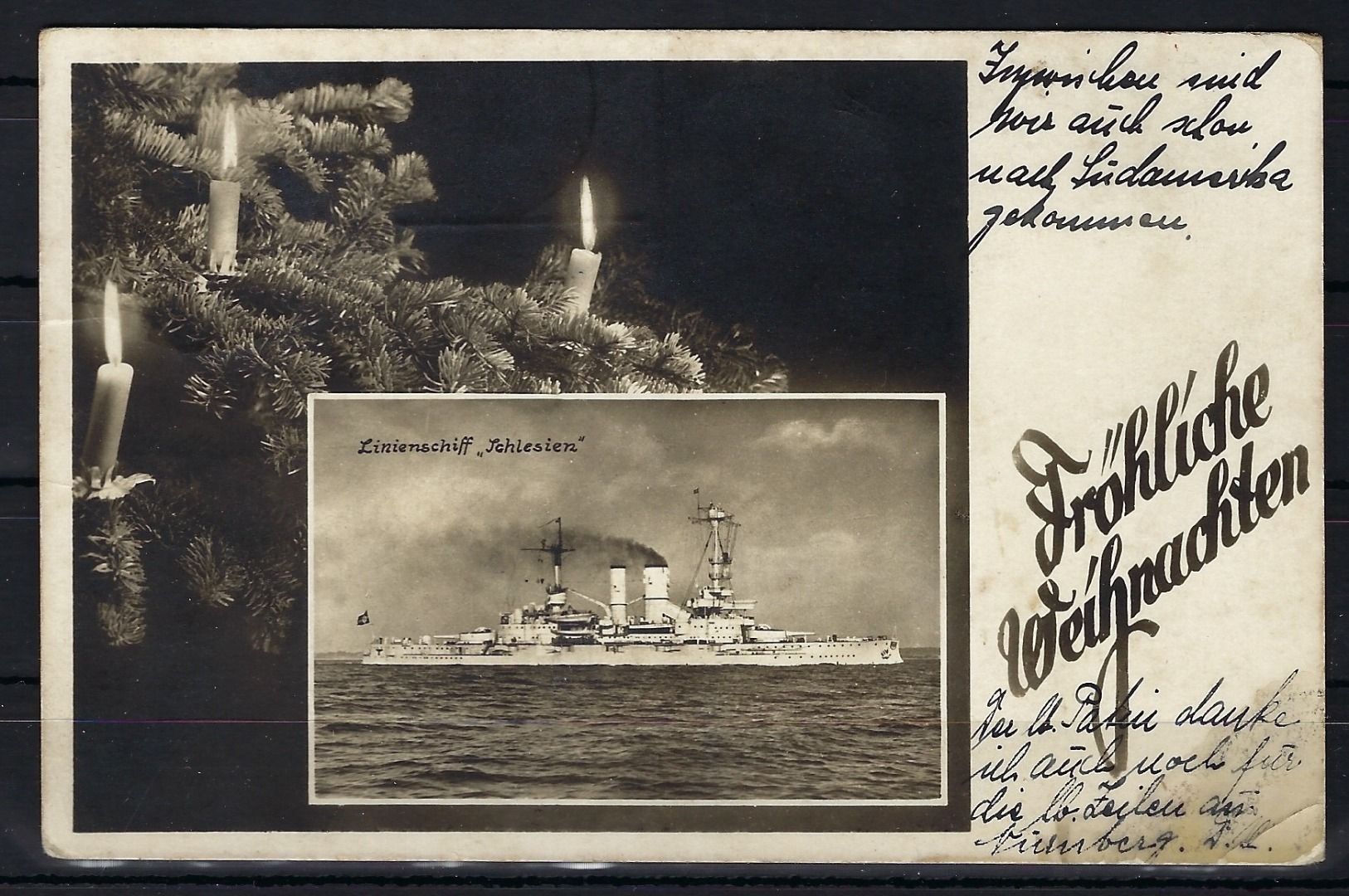 Schiffspost 1938, Weihnachtskarte vom Bord der Linienschiff Schlesien aus Trinidad