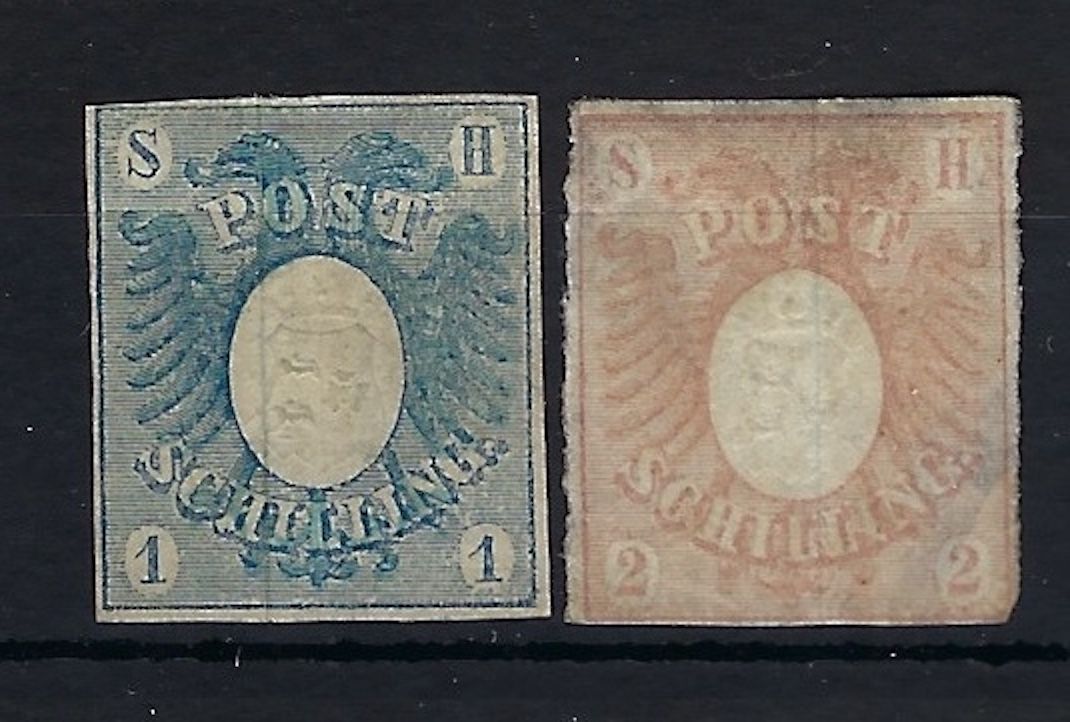 Schleswig-Holstein Mi 1 - 2 (*) ohne Gummi, Mi 1 leicht berührt sonst einwandfrei, Mi 2 etwas dünn