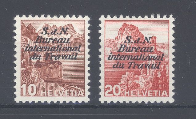 Schweiz Arbeitsorganisation BIT/ILO Michel Nummer 60/61, Freimarken 1942/43 **, die Michel Nummer 60 hat einen ganz leichten Farbabklatsch rückseitig, sonst ein ordentlicher Satz.