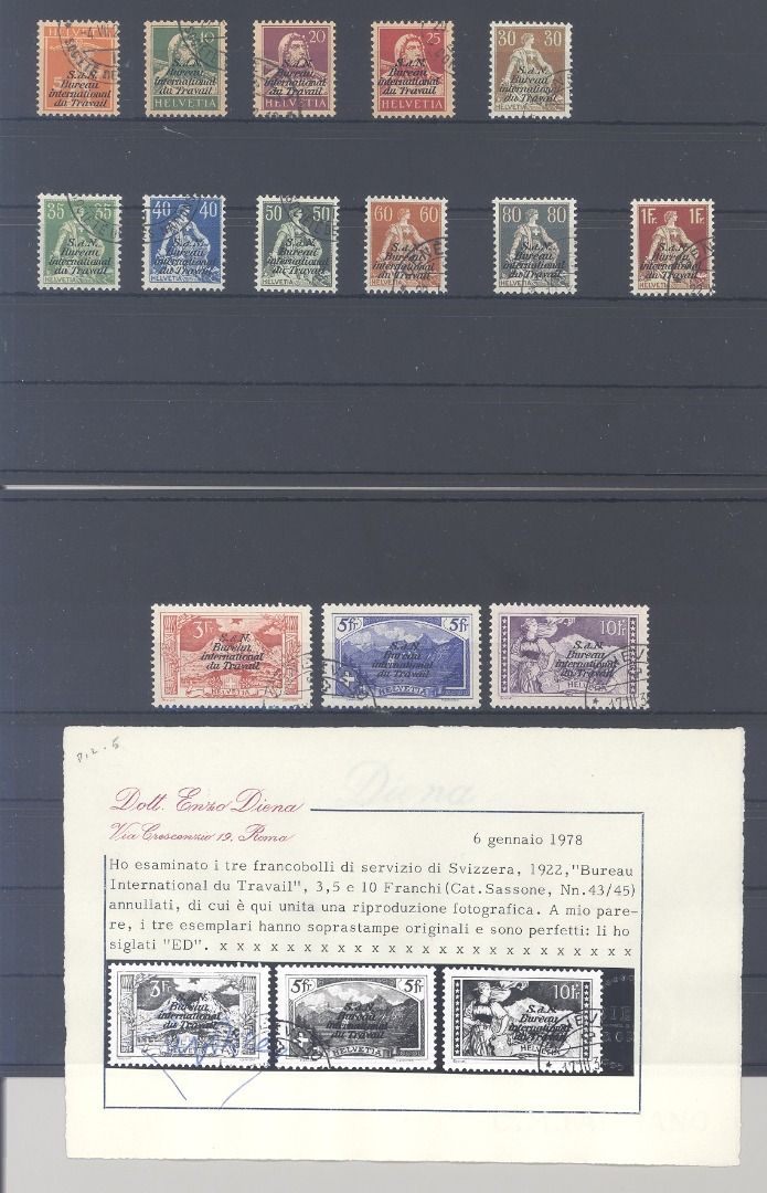 Schweiz Völkerbund Michel Nummer 1/14, Freimarken 1922 gestempelt. Für die Michel Nummern 12/14 liegt ein Befund Diena vor, ist mit eingescannt.