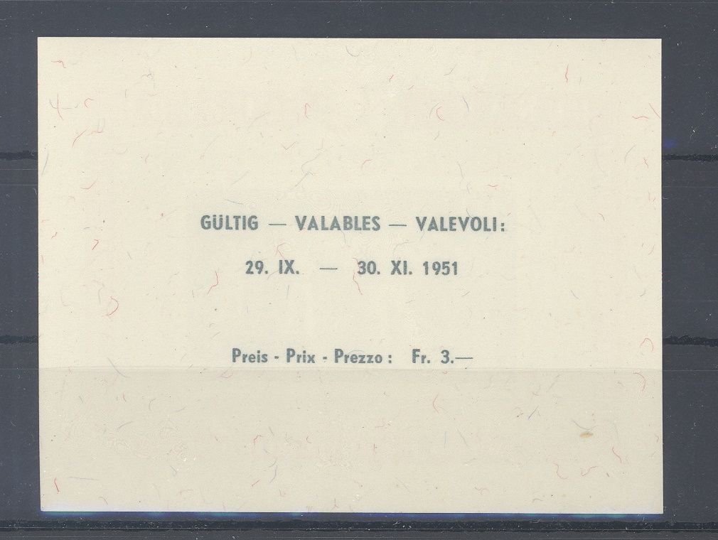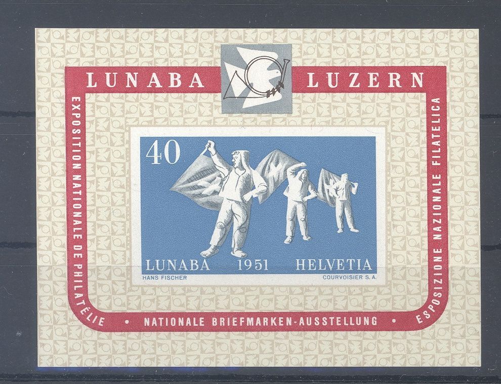 Schweiz Block 14, LUNABA 1951 ** mit kleinem wohl natürlichen Papiereinschluss.