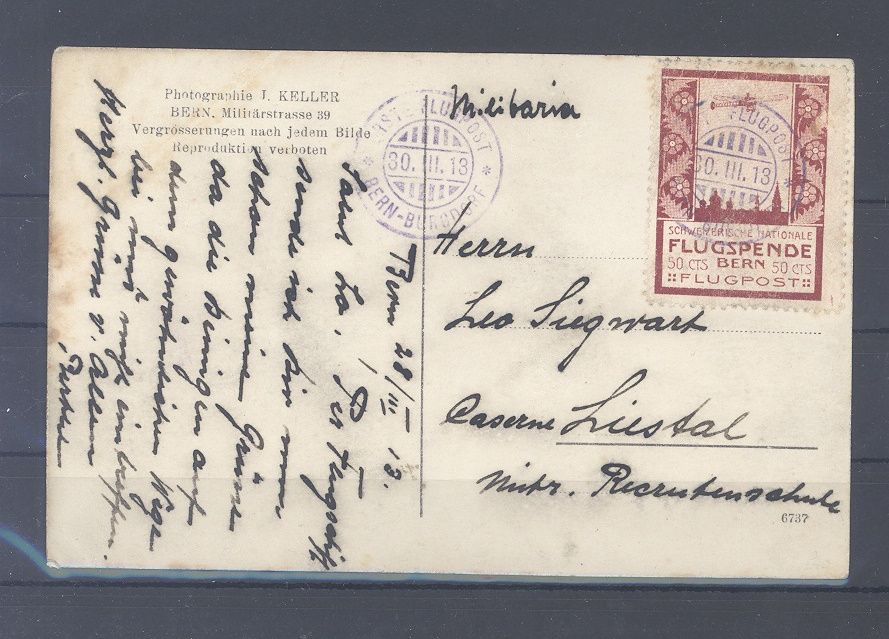 Schweiz, saubere Flugpost Karte frankiert mit Michel Nummer III als EFaus Bern gelaufen. Die Marke hat einen Eckbug und ist getönt, aber sehr interessante Ergänzung zur Sammlung!