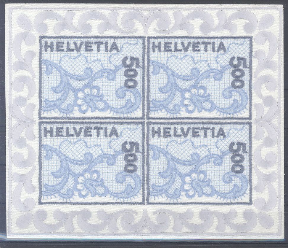 Schweiz, ** Kleinbogen Stickerei 2000 mit Stickereimarken. Nette Ergänzung zur Sammlung.