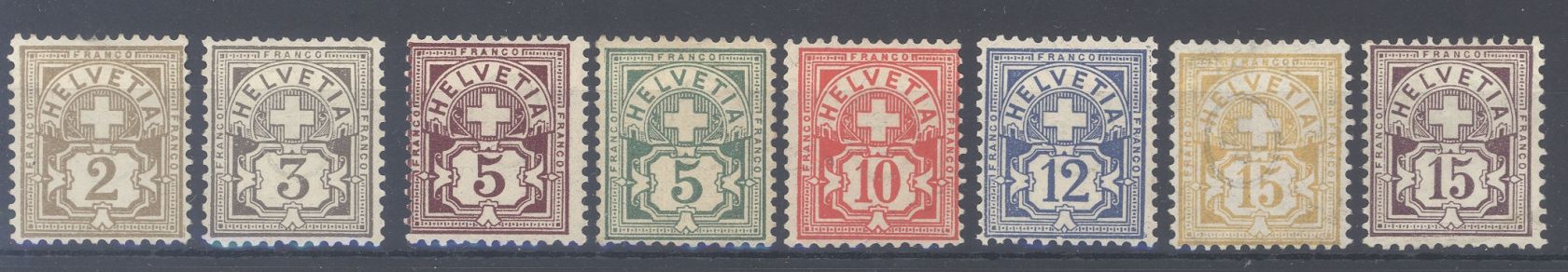 Schweiz Michel Nummer 50/57, Freimarken 1882 ungebraucht * in etwas unterschiedlicher Erhaltung.