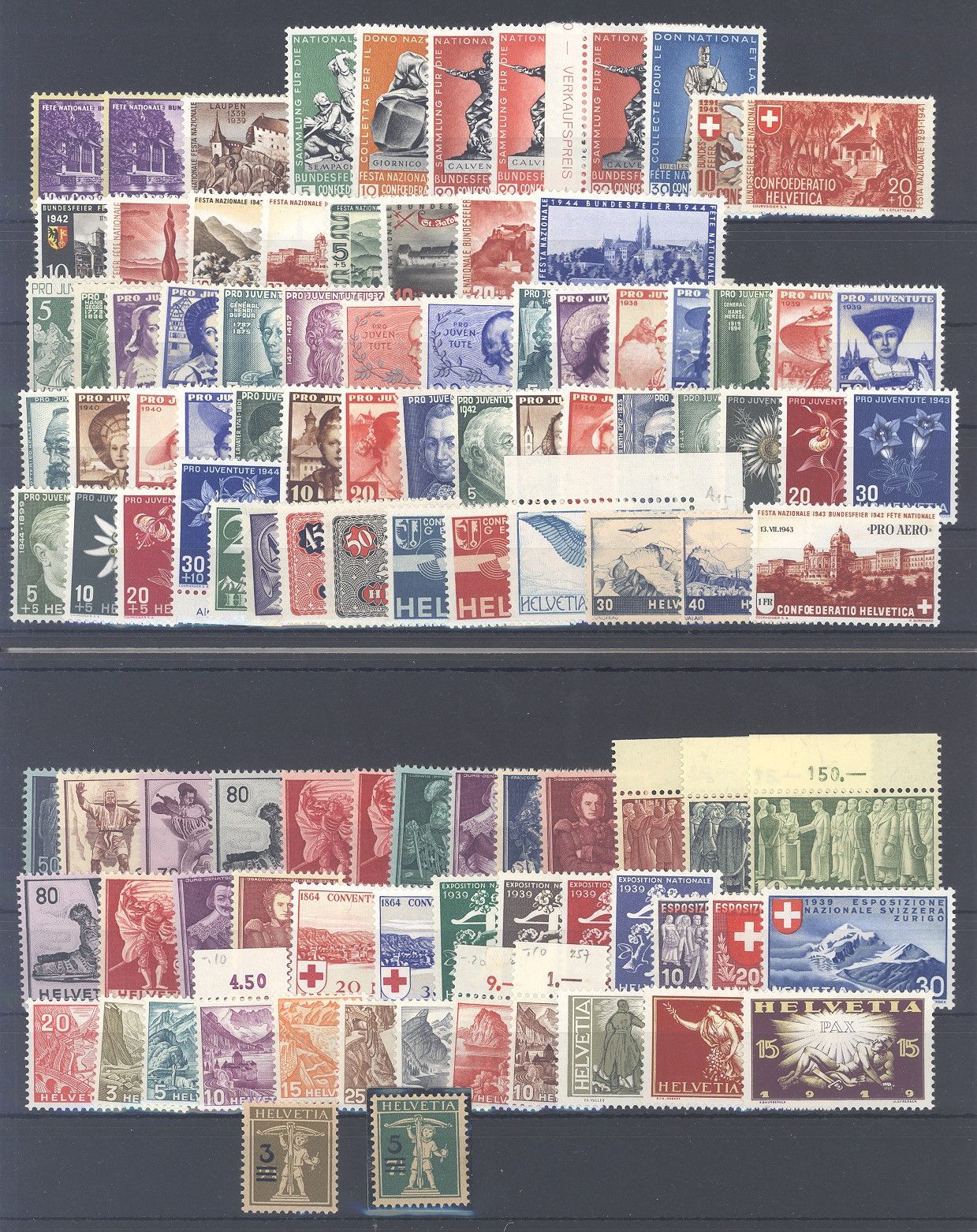 Schweiz, umfangreicher ** Posten aus den 30/40er Jahren auf 2 Steckkarten, dabei auch Mi.Nr. 328/30, 377/85, einfach zusammengesteckt. Vollkommen unberechnet, sollte wohl ein nettes Schnäppchen sein...