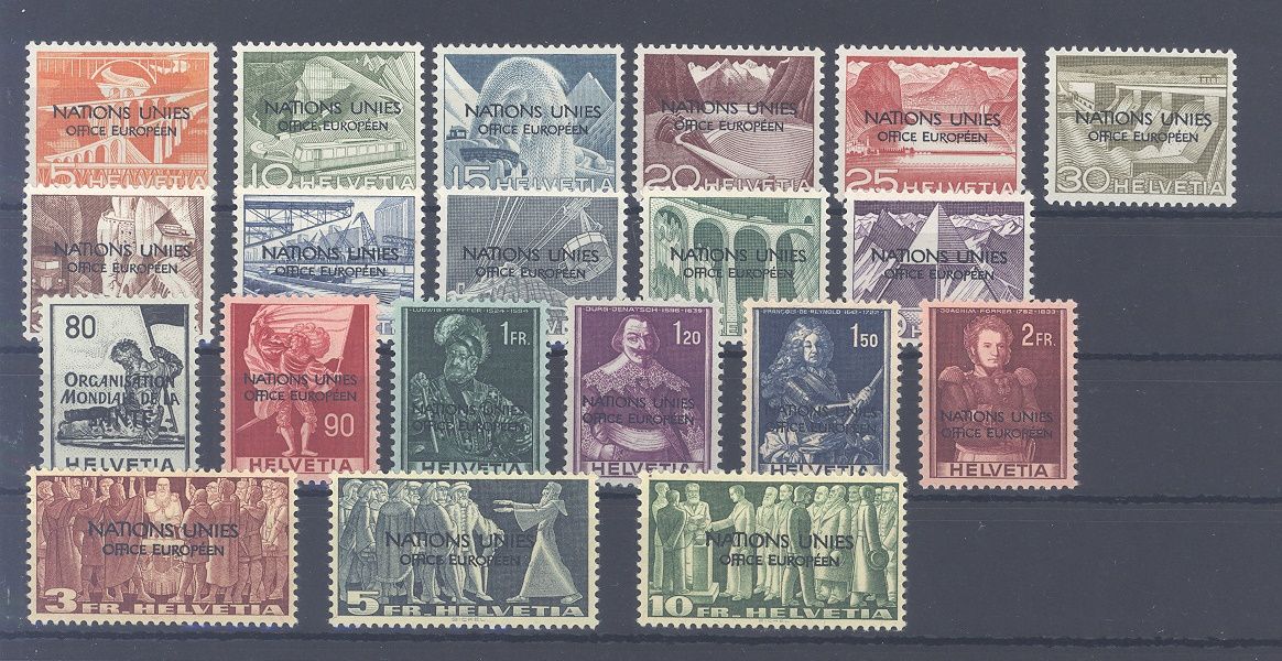 Schweiz UNO Michel Nummer 1/20, Freimarken 1950 **