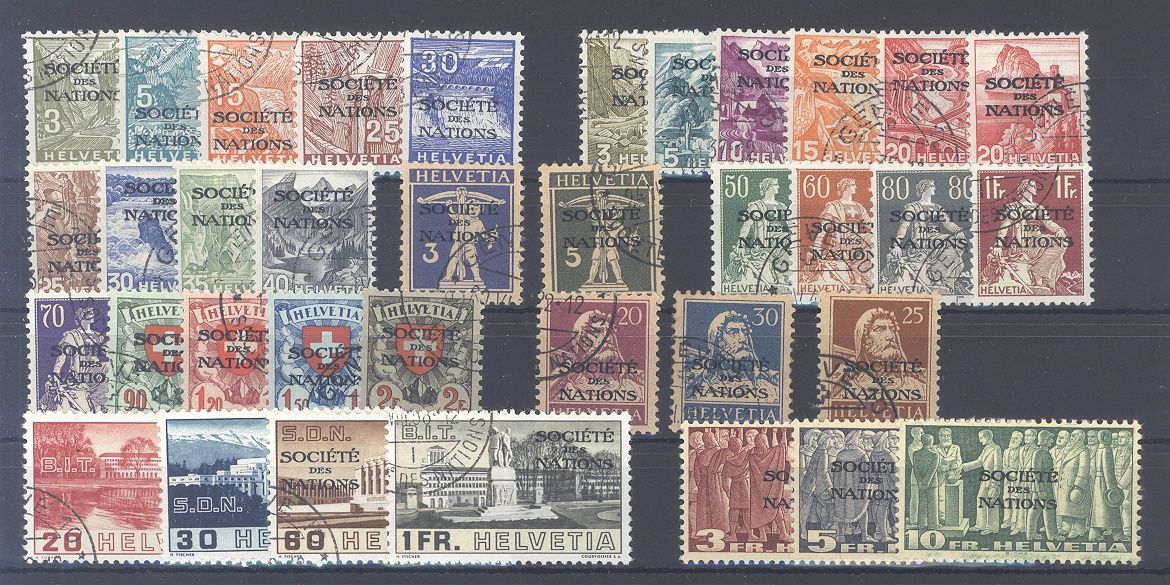 Schweiz Völkerbund, recht umfangreicher **/gestempelter Posten auf Steckkarte.