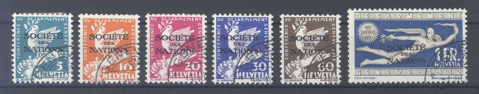 Schweiz Völkerbund Michel Nummer 36/41, Freimarken 1927/31 gestempelt mit noch Gummierung.