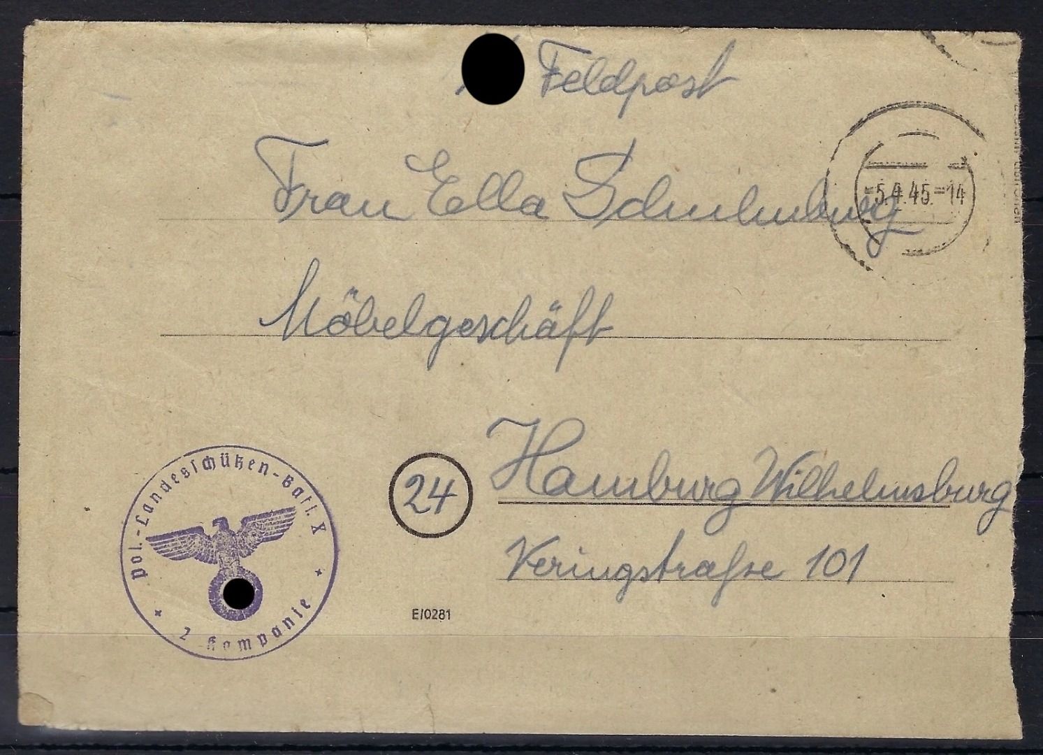 SS-Feldpost n. HH-Wilhelmsburg 5.4.45, Landesschützen-Bataillon