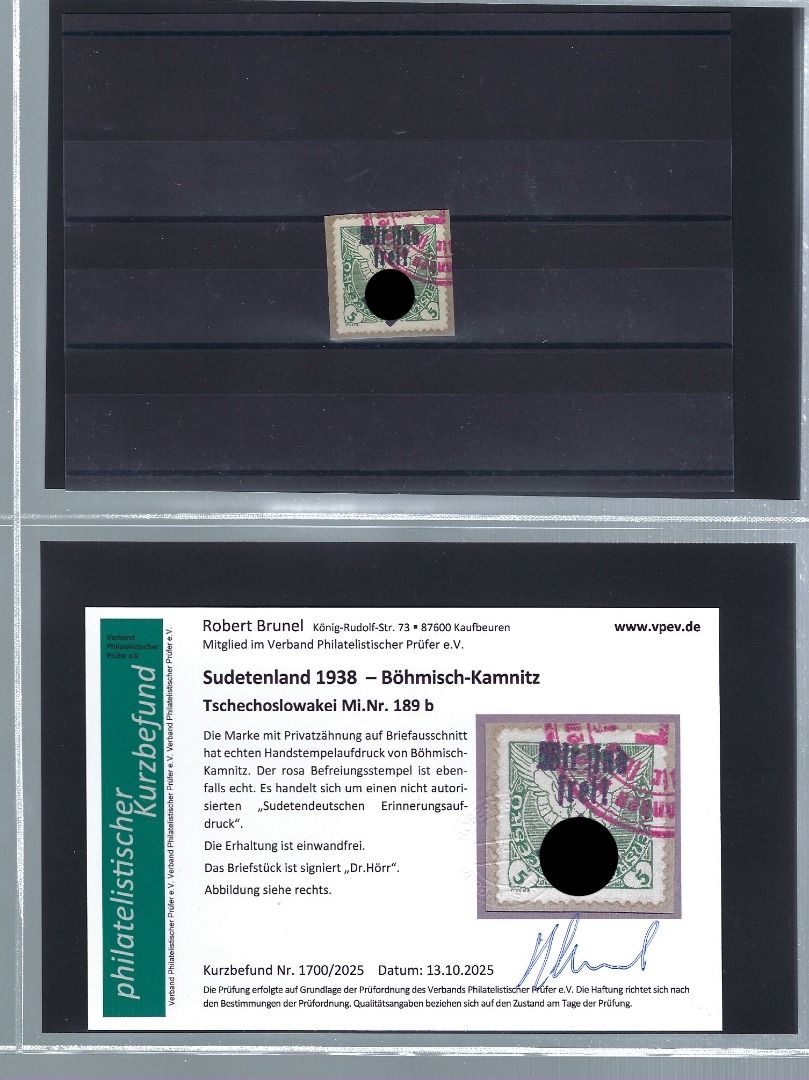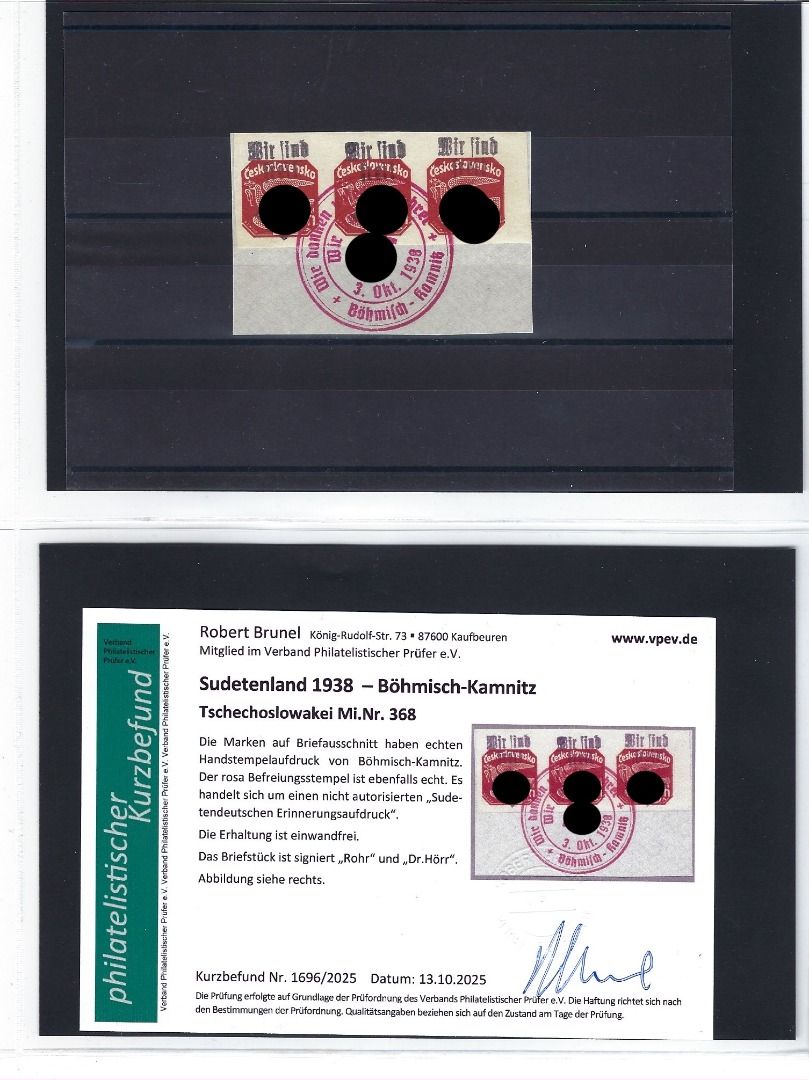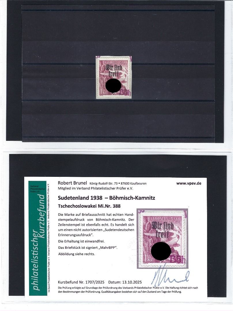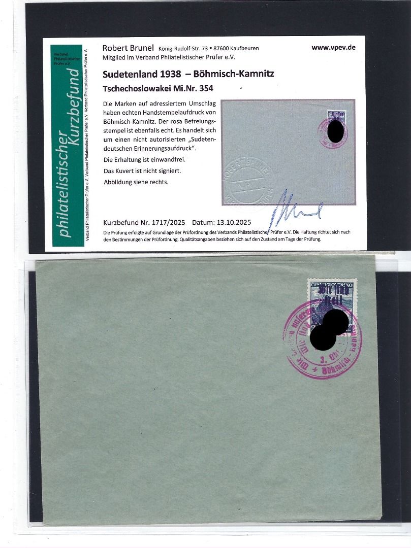 Umfassende und sehr interessante Partie Erinnerungsaufdrucke Böhmisch-Kamnitz, Teplitz-Schönau und Plaw, mit Marken/Belegen/Ganzsachen/Briefstücken, alles mit KB Brunel VP, in diesem Umfang wohl selten angeboten