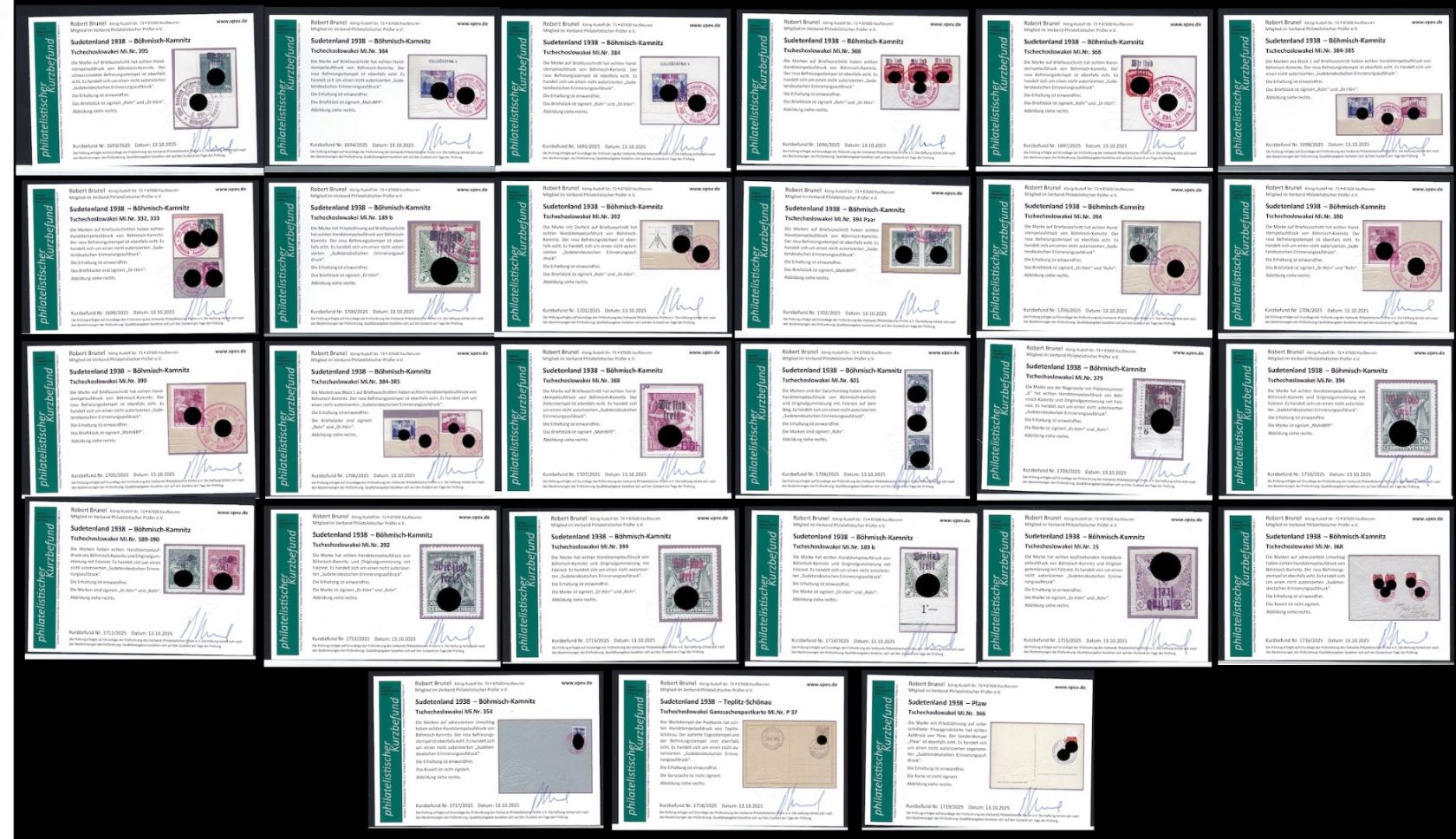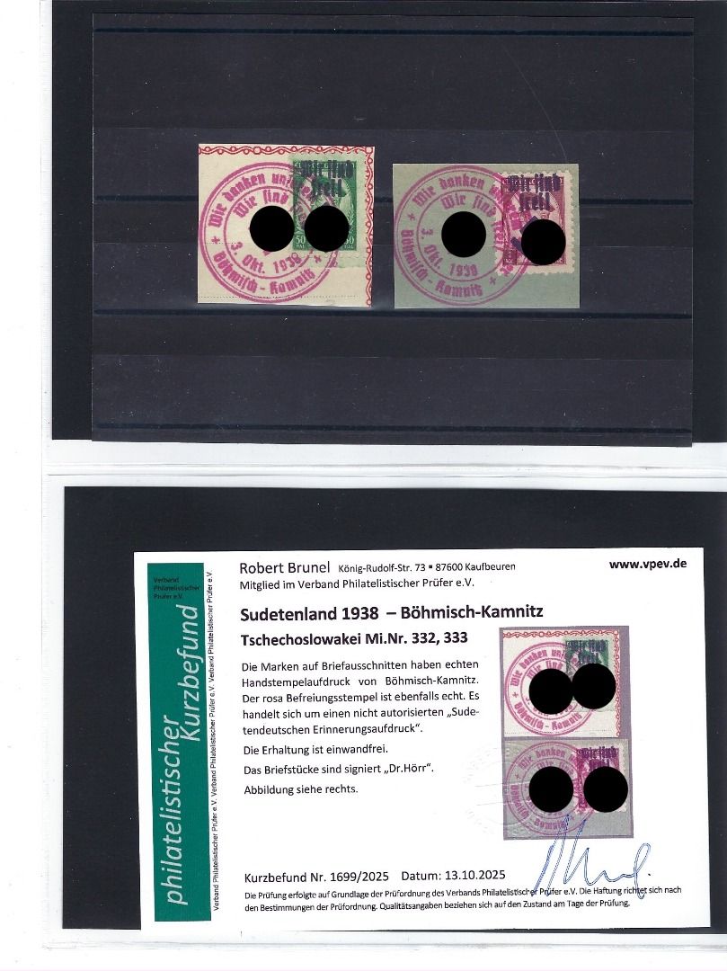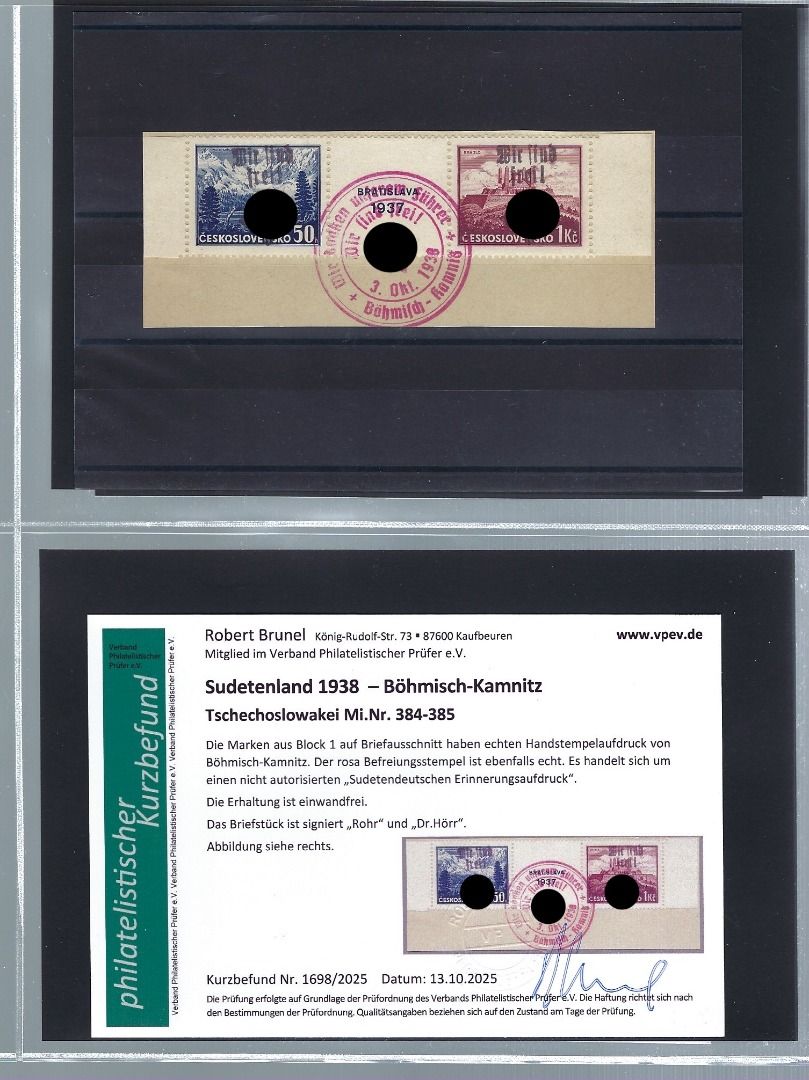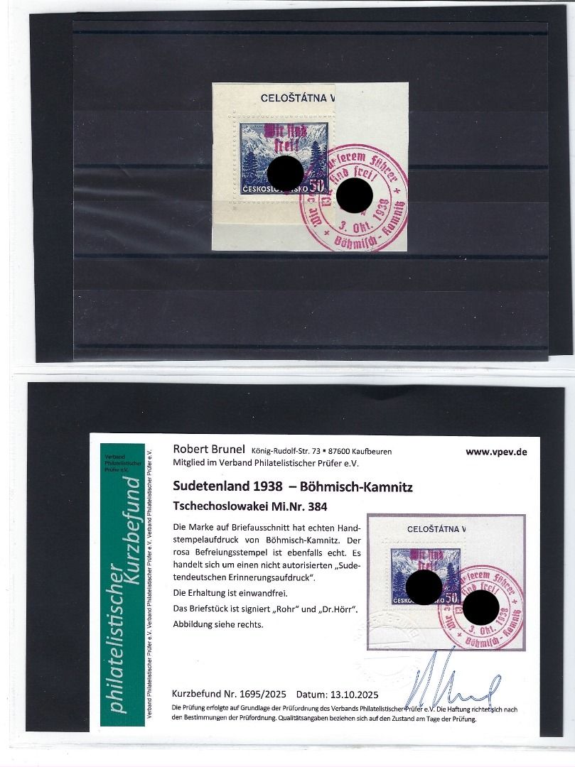 Umfassende und sehr interessante Partie Erinnerungsaufdrucke Böhmisch-Kamnitz, Teplitz-Schönau und Plaw, mit Marken/Belegen/Ganzsachen/Briefstücken, alles mit KB Brunel VP, in diesem Umfang wohl selten angeboten