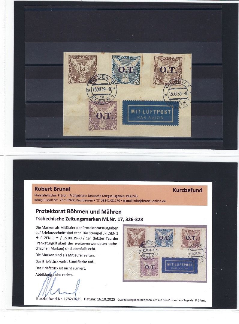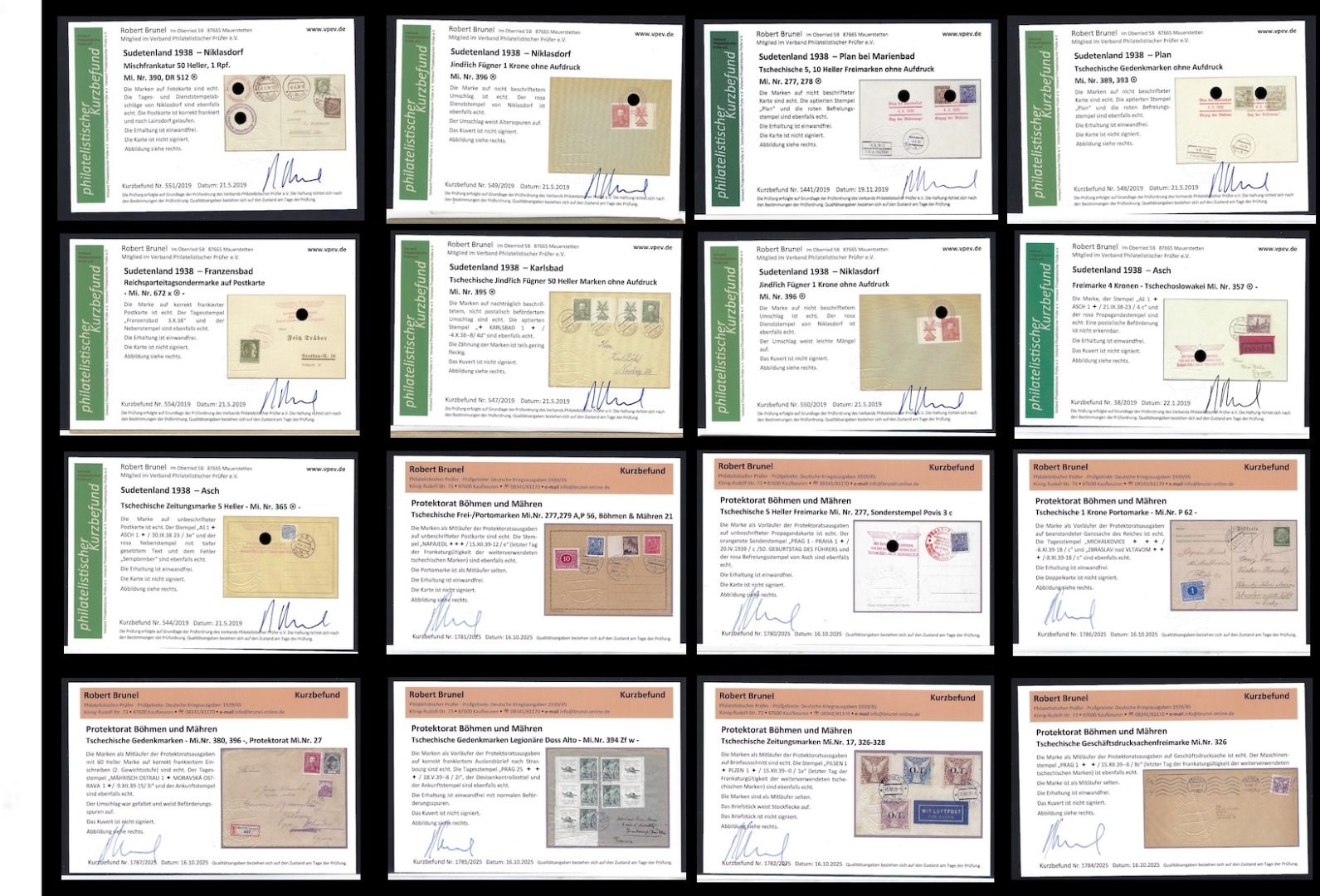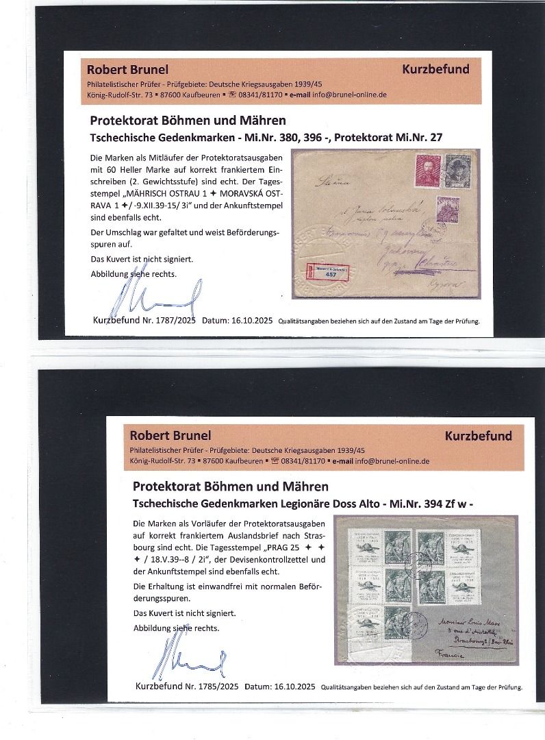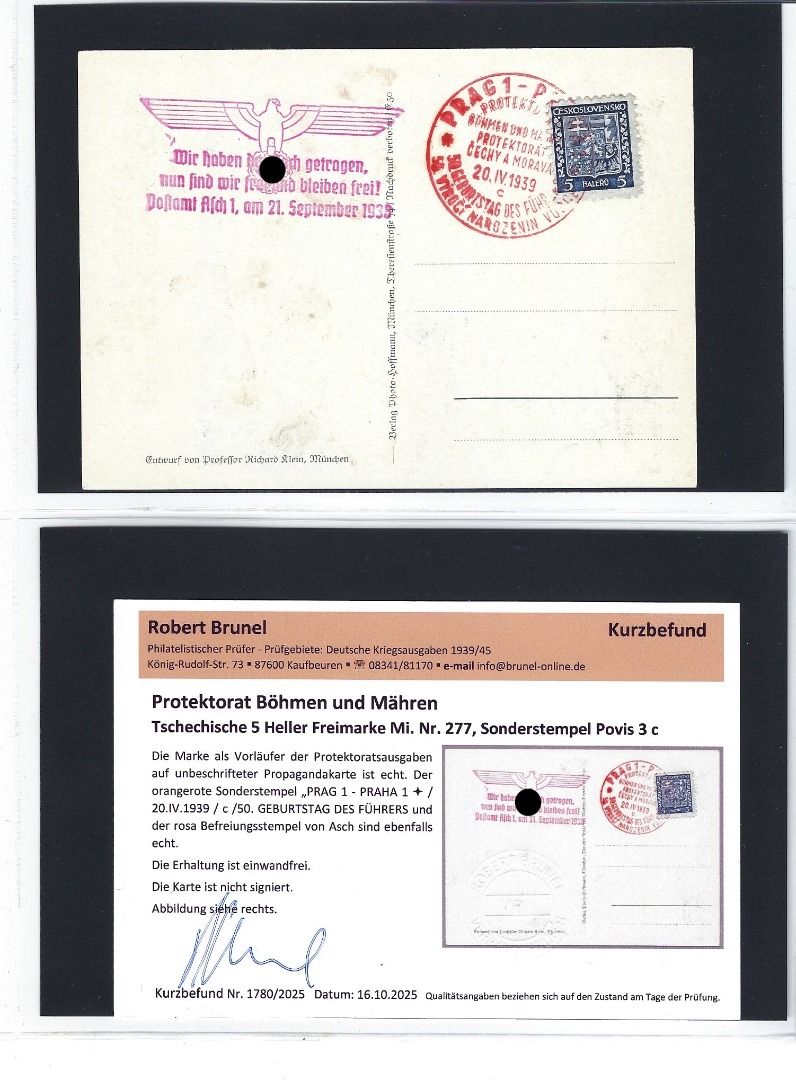 Tolle Kollektion Briefe, Karten und Briefstücke mit Propagandastempel und Befreieungsstempeln, mit Frankaturen Deutsches Reich, Tschechoslowakei sowie Böhmen und Mähren mit Vor- und Mitläufer, alles mit KB/Attest Brunel VP. Interessanter Posten, so sortenreich nicht häufig angeboten !