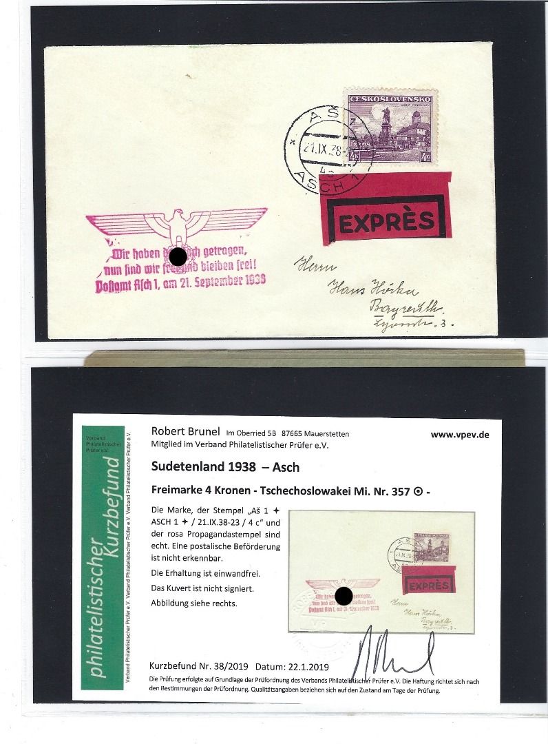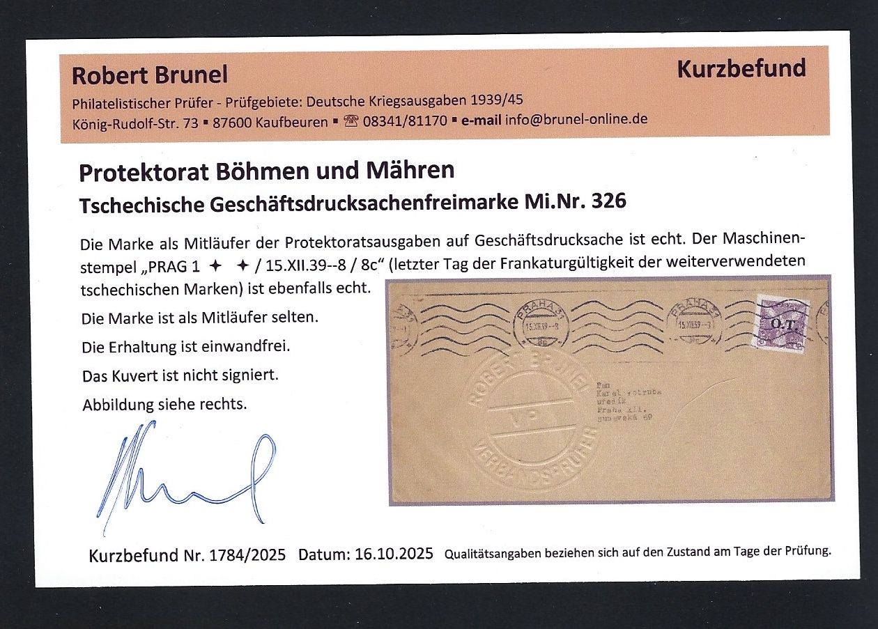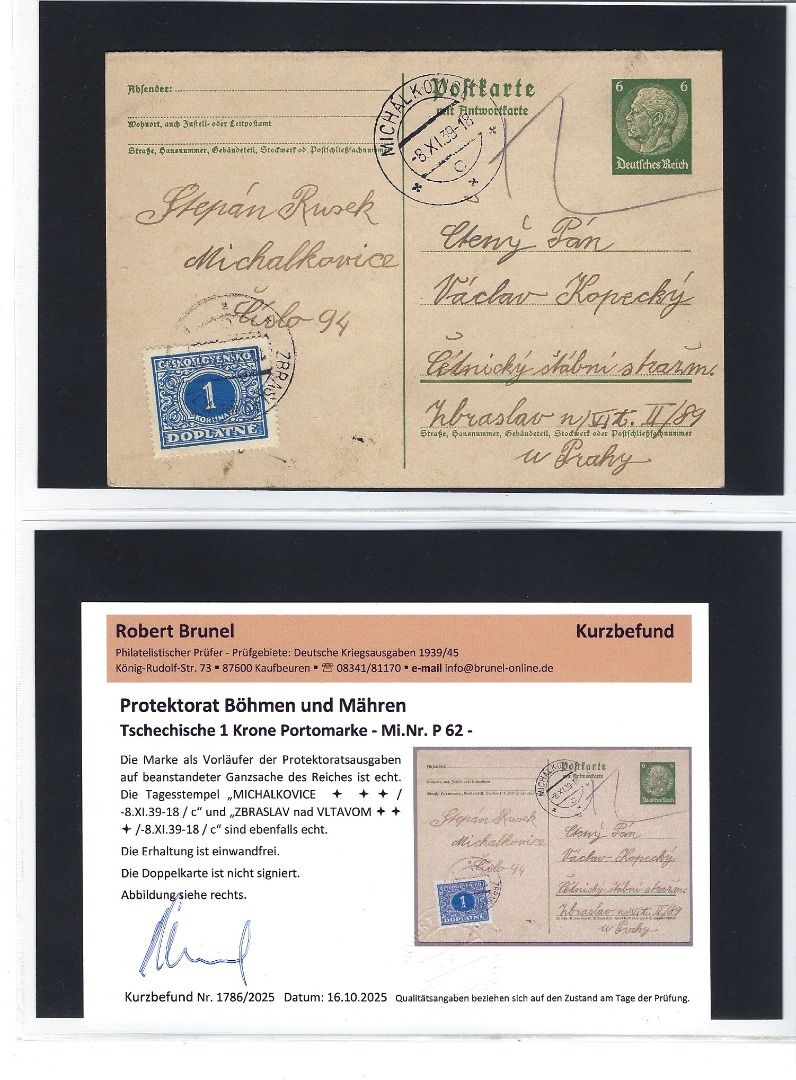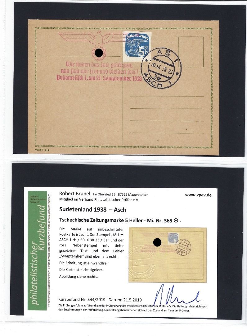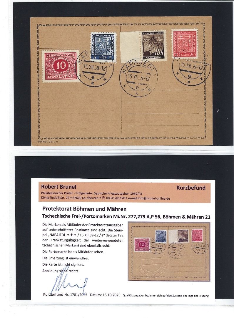 Tolle Kollektion Briefe, Karten und Briefstücke mit Propagandastempel und Befreieungsstempeln, mit Frankaturen Deutsches Reich, Tschechoslowakei sowie Böhmen und Mähren mit Vor- und Mitläufer, alles mit KB/Attest Brunel VP. Interessanter Posten, so sortenreich nicht häufig angeboten !