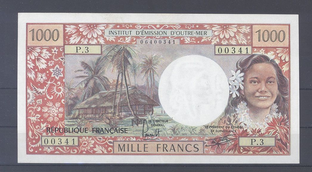Tahiti, Banknote 1000 Francs o.D. 1977, Pick 27b. Zustand II.
