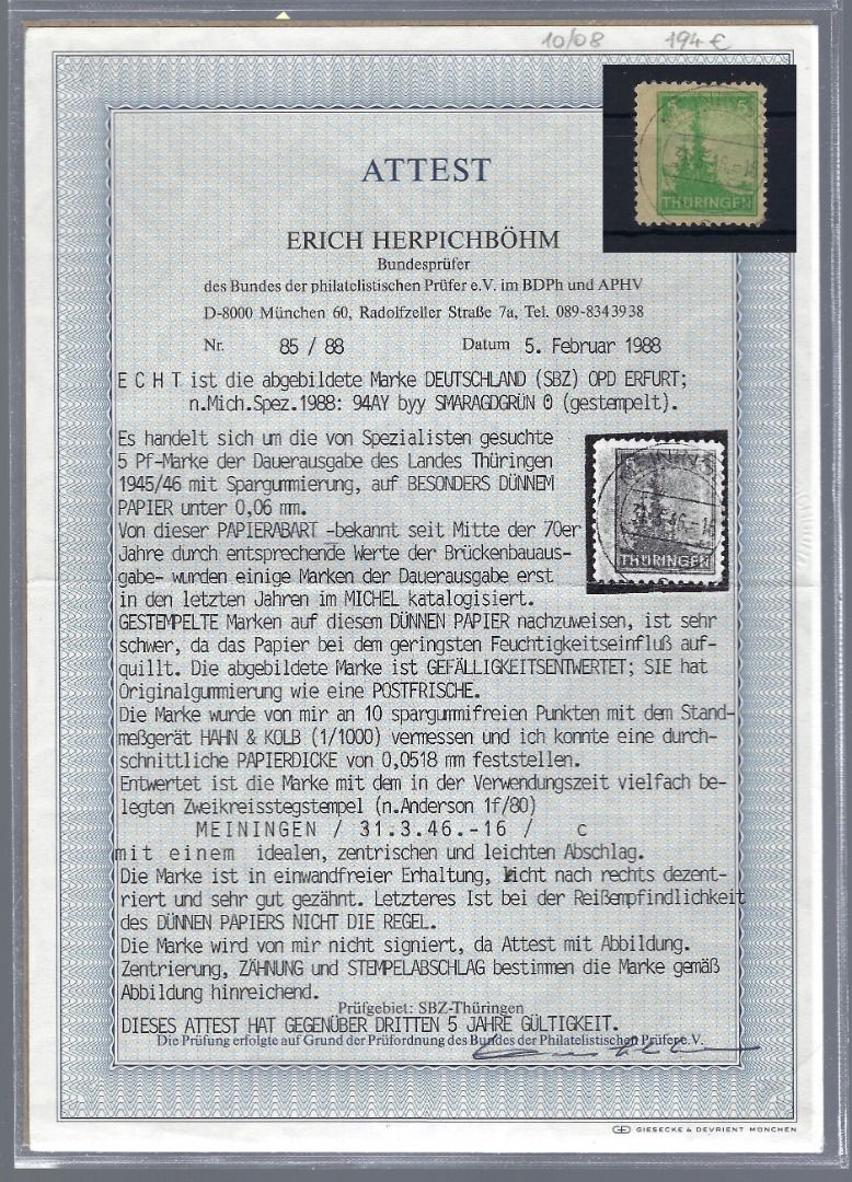 Thüringen Mi 94 AY byy ° und einwandfrei, mit FA Herpichböhm BPP