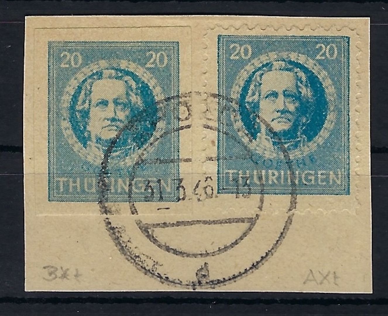 Thüringen Mi 98 AX t + BX t Briefstück, gep. Ströh BPP, ME 320€