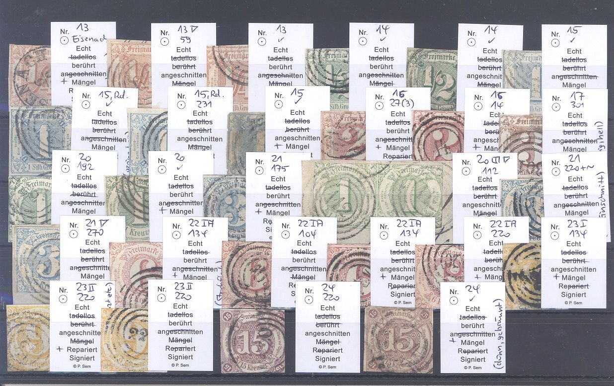 Thurn & Taxis, umfangreicher gestempelter Posten aus Michel Nummer 13/25, 2. Ausgabe mit vielen verschiedenen Nummernstempeln . Jeder Wert ist geprüft, hat bereits wohl bald soviel gekostet, billigst...