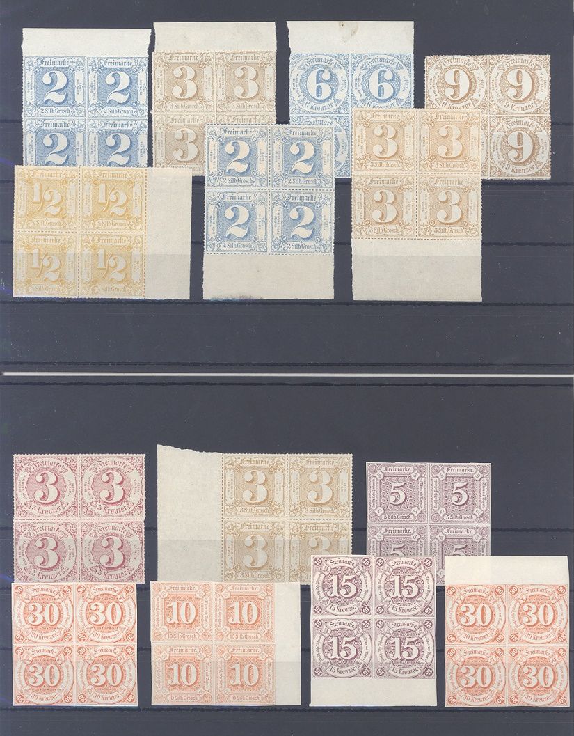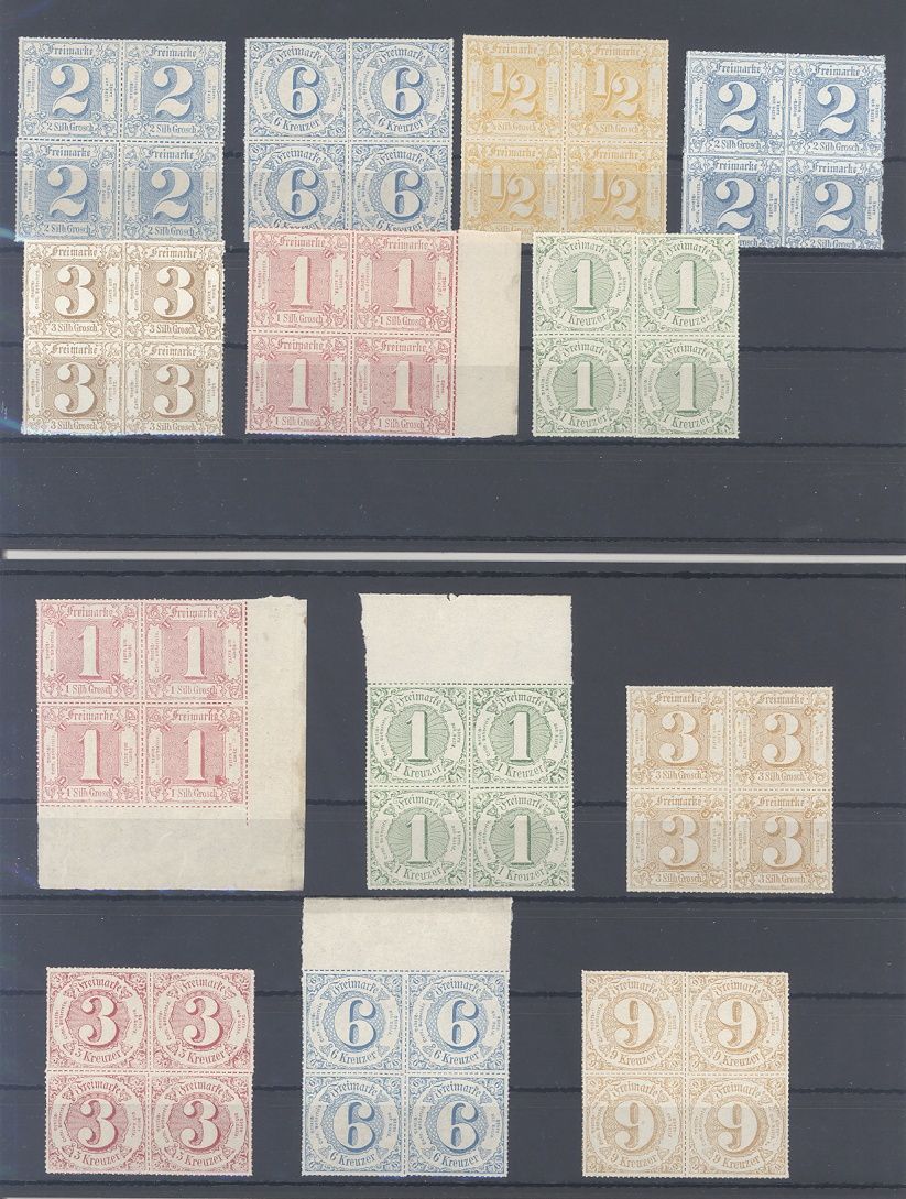 Thurn & Taxis, umfangreicher ** Posten Viererblöcke auf vier Steckkarten in wie üblich leicht unterschiedlicher, insgesamt sehr ordentlicher Erhaltung. Sehr nett!