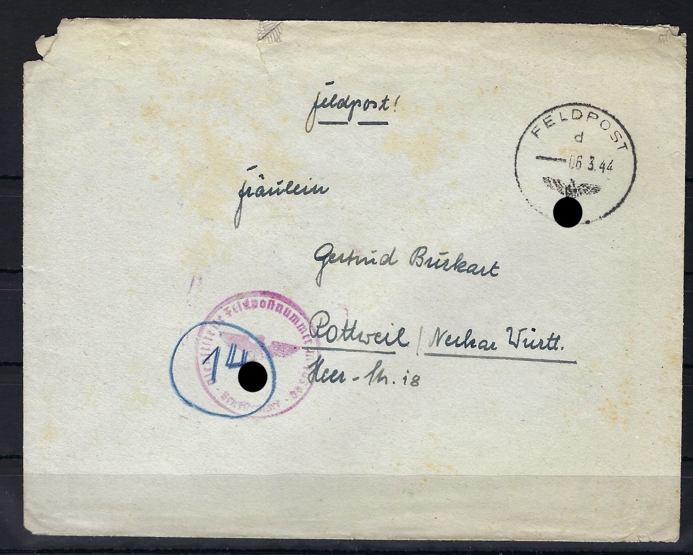 U-Boot 453, Marine Feldpost aus Griechenland, versenkt am 21.5.44