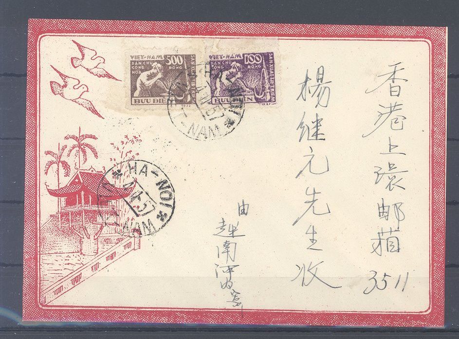 Vietnam, sauberer Brief frankiert mit Produktionsförderung 1953 aus Ha - Noi nach Hong Kong gelaufen.