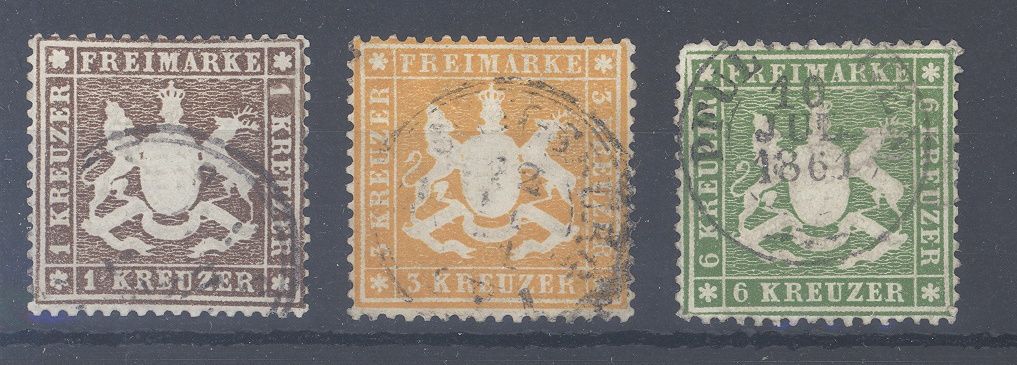 Württemberg Michel Nummer 16/18x aus Freimarken 1860 gestempelt.