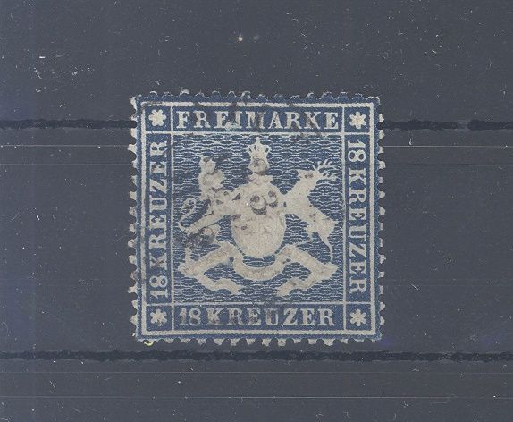 Württemberg Michel Nummer 20y, 18 Kreuzer Freimarken 1861 gestempelt.