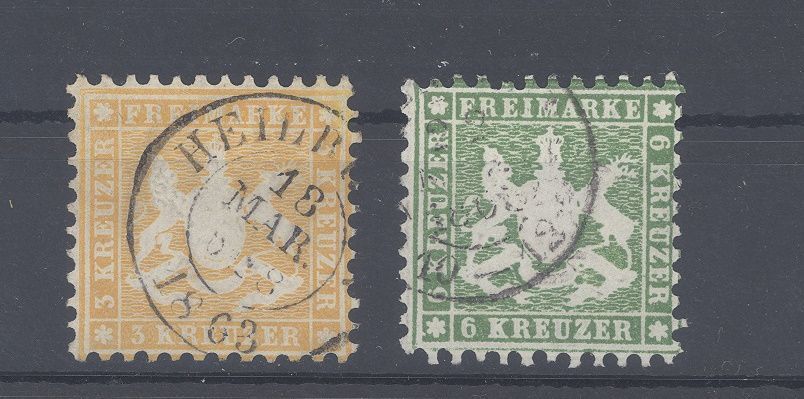 Württemberg Michel Nummer 22/23 aus Freimarken 1862 gestempelt, ordentliche Werte.