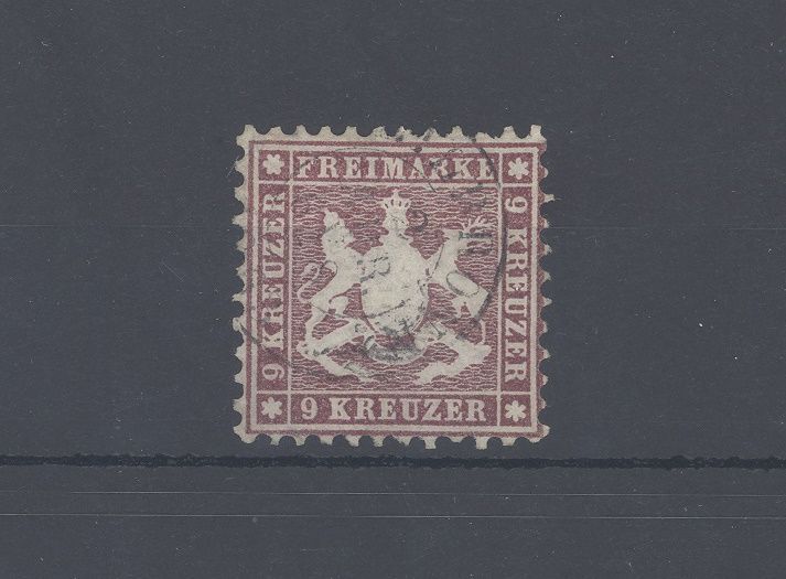 Württemberg Michel Nummer 24, 9 Kreuzer Freimarke 1862 gestempelt.