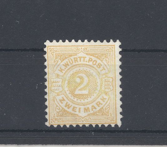 Württemberg Michel Nummer 50, 2 Mark Freimarke 1875 ungebraucht mit wohl Neugummierung. Der Michel für ungebraucht * beträgt 750,00 Euro, ungebraucht selten einmal angeboten.