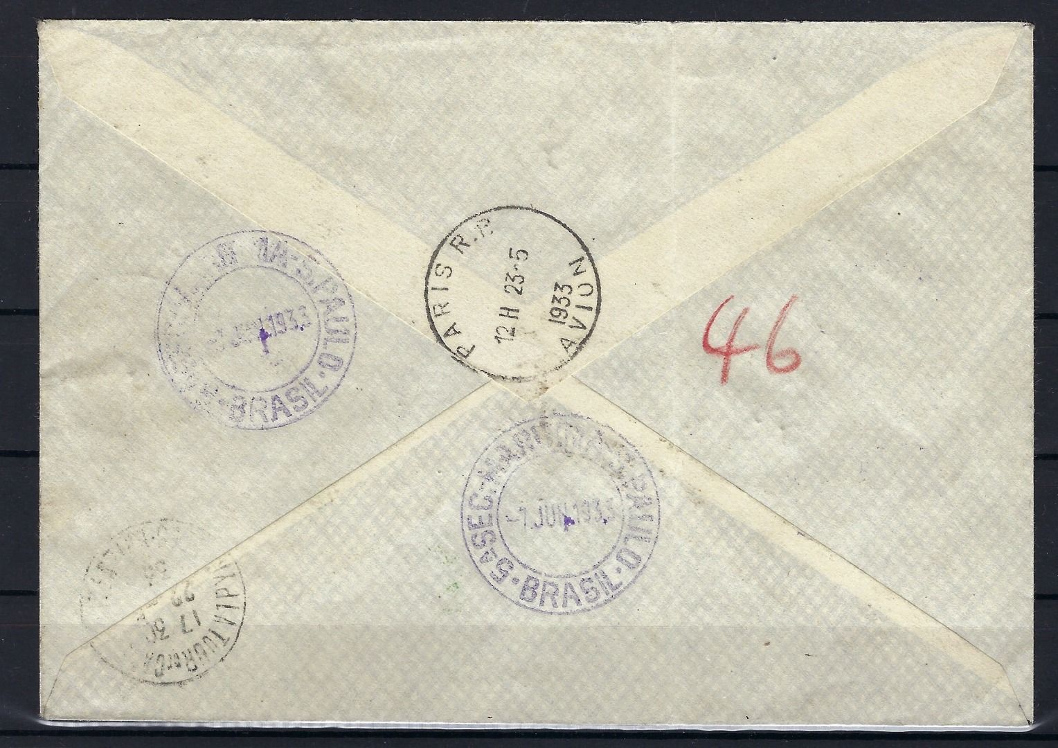 Zeppelinbrief /Einschreiben vom 19.5.1933 befördert von Andorra nach Sao Paulo mit grünem Bestätigungsstempel "Luftschiff Graf Zeppelin 2. Südamerikafahrt 1933